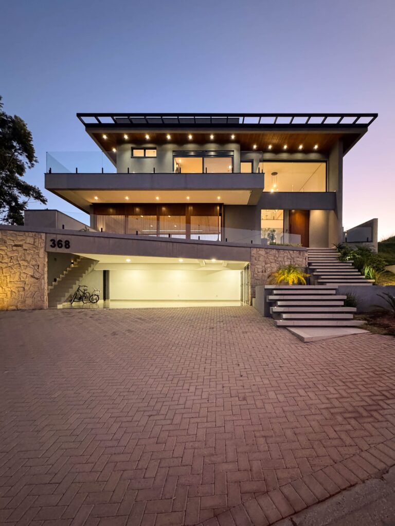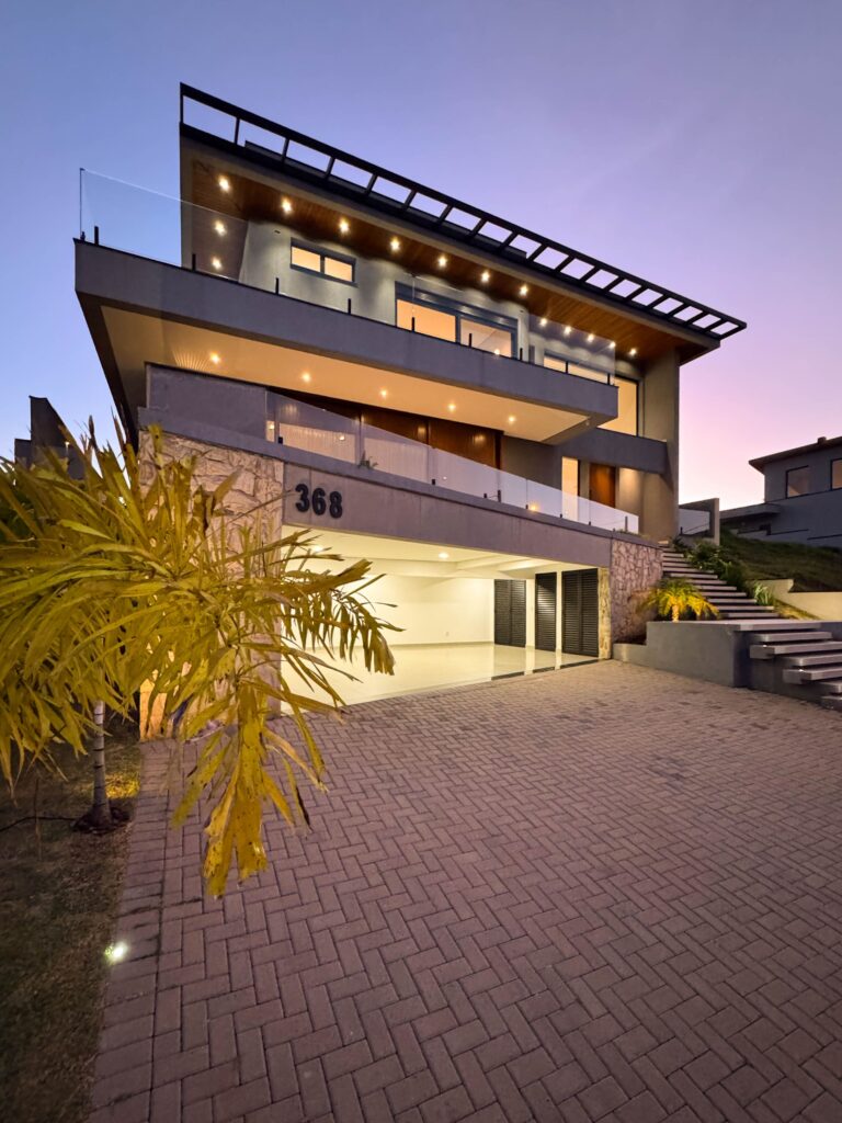A Casa Bianchi traduz com precisão os elementos que mais valorizamos em nossos projetos: integração total entre os ambientes, conexão fluida entre áreas internas e externas, presença marcante da natureza, grandes planos de vidro que potencializam a luz natural, e a combinação elegante de materiais como pedra e madeira.