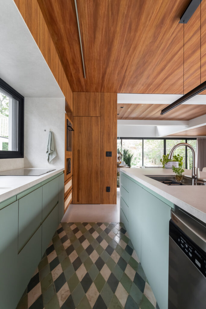 Ainda assim havia a necessidade de criar uma cozinha prática para o dia a dia, por isso criamos um tampo mais funcional sob a janela – com pia e cooktop.