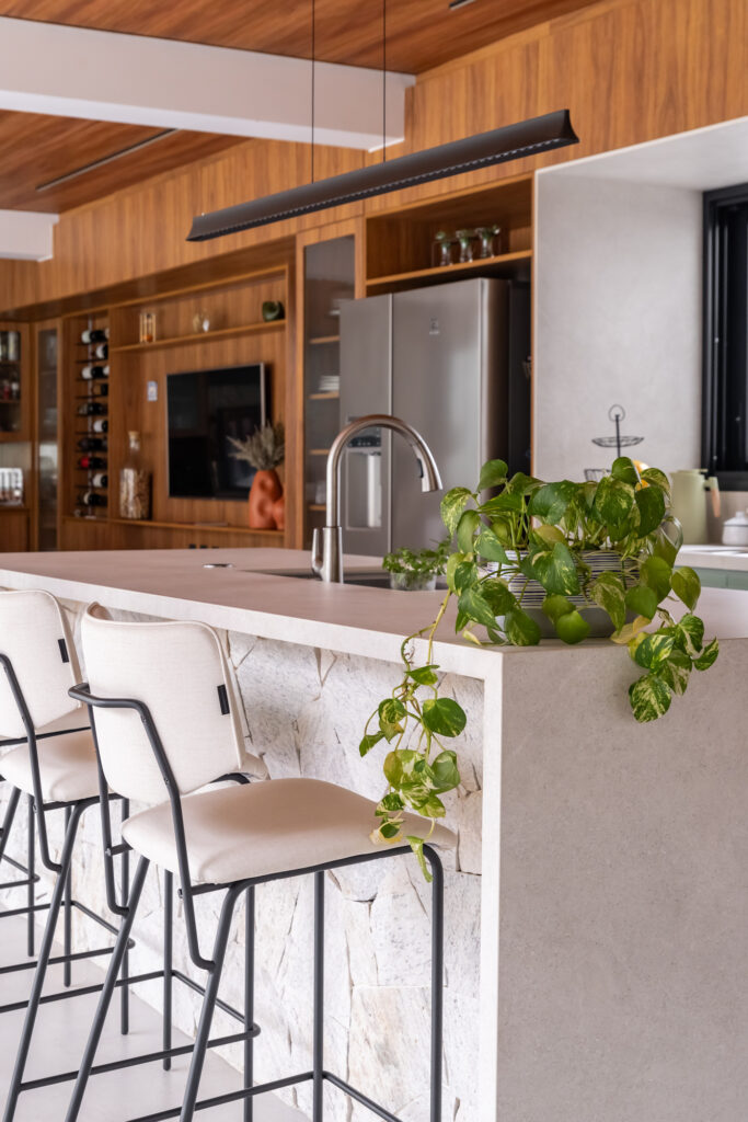 Eles são uma família que adoram receber amigos e familiares, e a integração dos ambientes favorece essa interação.