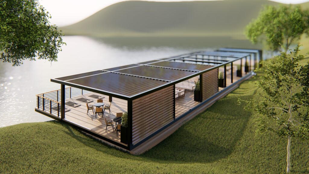 Os estudos foram feitos em diversos pontos do condomínio, sempre próximo a um equipamento de lazer. Foram criados espaços anexos às quadras de tênis, de beach tênis, ao campo de futebol, além de áreas próximas ao lago.