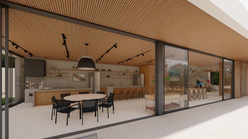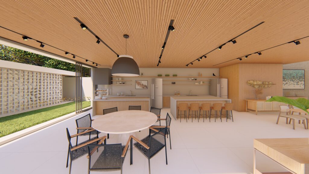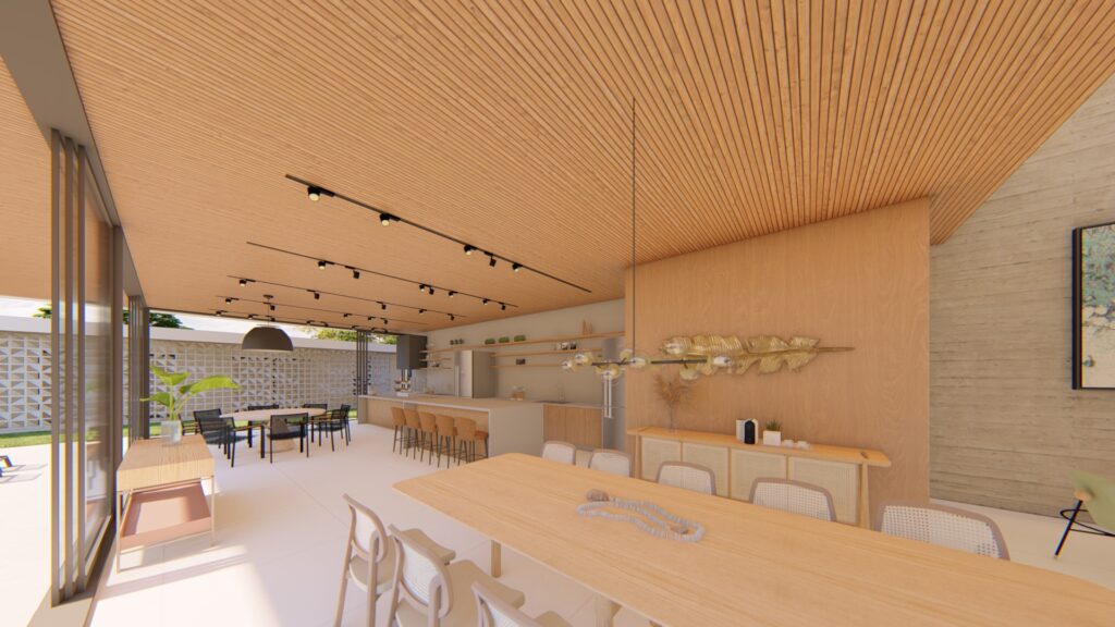 Para isso elaboramos os interiores dos ambientes não só para serem bonitos mas também espaços, valorizando os espaços de circulação e os acessos.